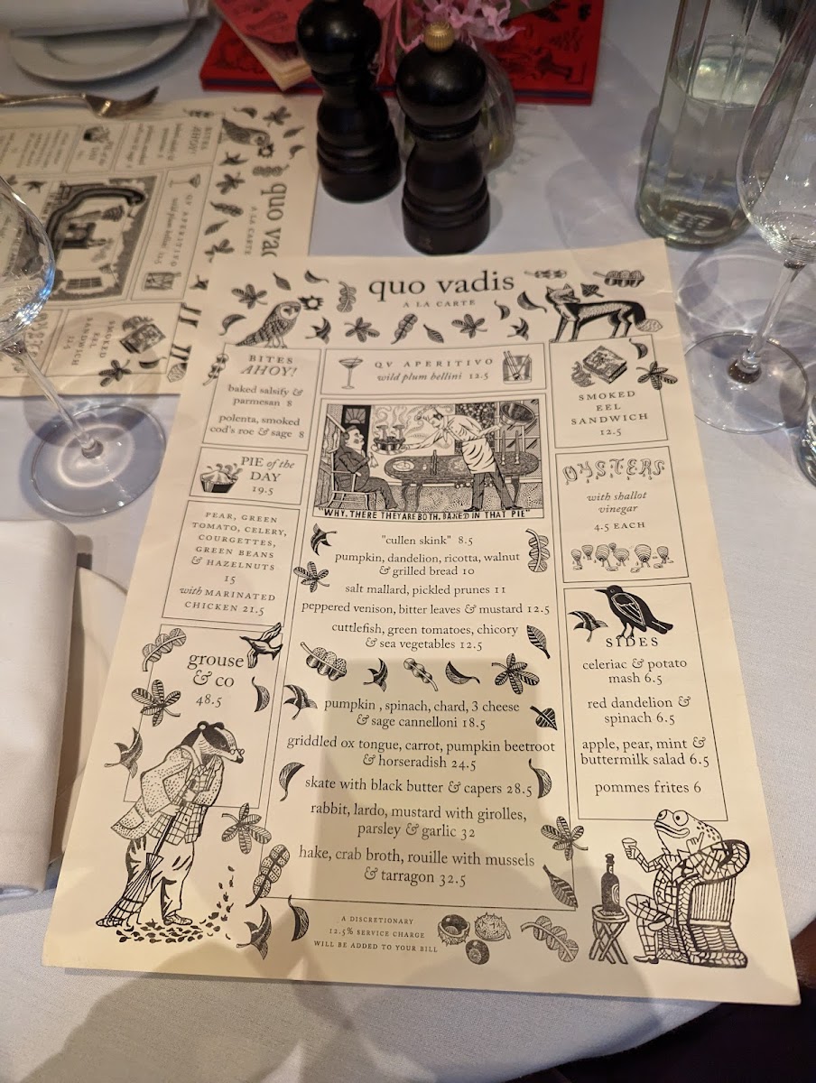 Introducing the menu at Quo Vadis, located in the heart of London at 26-29 Dean St, is a journey of culinary delight that you won't want to miss. The ambiance is refreshingly calm, making it a perfect spot to escape the city's hustle. Guests rave about the playful yet hearty dishes, with highlights including the renowned Smoked Eel Sandwich—definitely living up to its reputation. Each taste is a masterclass in balance, melding textures and flavors beautifully.